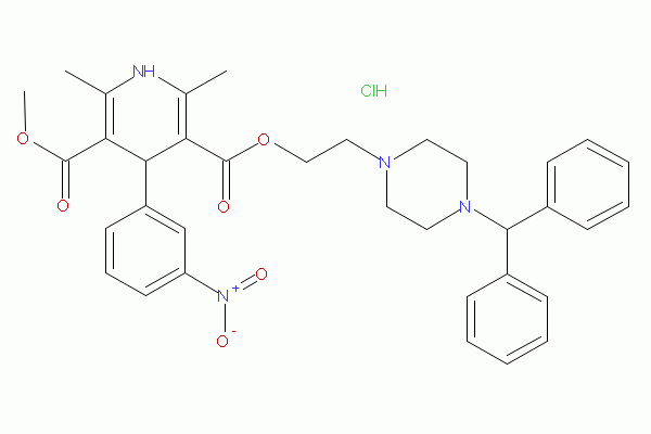 1,4-二氢-2,6-二甲基-4-(3-硝基苯基)-3,5-吡啶二羧酸-2-[4-(二苯基甲基)-1-哌嗪基]乙基甲基酯二盐酸盐;2-[4-(二苯基甲基)-1-哌嗪基]乙基甲基-1,4-二氢-2,6-二甲基-4-(3-硝基苯基)-3,5-吡啶二羧酸酯二盐酸盐